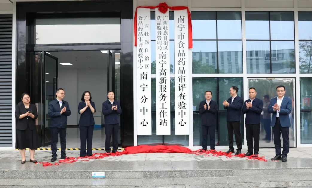 10月30日,AG真人南宁高新服务工作站、自治区食品药品审评查验中心南宁分中心、南宁市食品药品审评查验中心(新址)揭牌仪式在南宁高新区中关村科技广场举行。AG真人党组书记、局长李勇强,南宁市委常委、副市长张小强等领导共同揭牌。