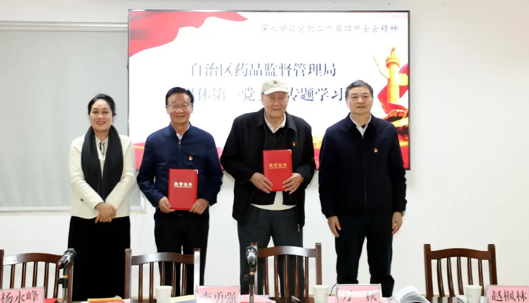第一党支部书记杨永峰领学《党的二十届四中全会精神宣讲提纲》,系统的从全会基本情况和《建议》起草过程、准确把握“十五五”时期在基本实现社会主义现代化进程中的重要地位、深刻领会“十五五”时期经济社会发展的指导方针和主要目标、全面理解“十五五”时期经济社会发展的战略任务和重大举措,以及坚持和加强党的全面领导、凝聚起推进中国式现代化的磅礴力量等方面,对党的二十届四中全会精神作了深入宣讲。在交流研讨环节,老干部们结合自身经历畅谈学习感悟,大家纷纷表示:“全会提出,实现社会主义现代化需要接续奋斗。我们老药监人虽然退休了,但责任担当不能减,要当好全会精神的宣传员、践行者,为广西药监事业高质量发展贡献银发力量。”