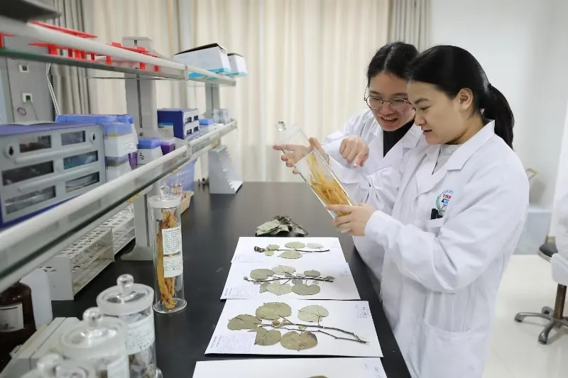 检验员核对海洋中药材标本