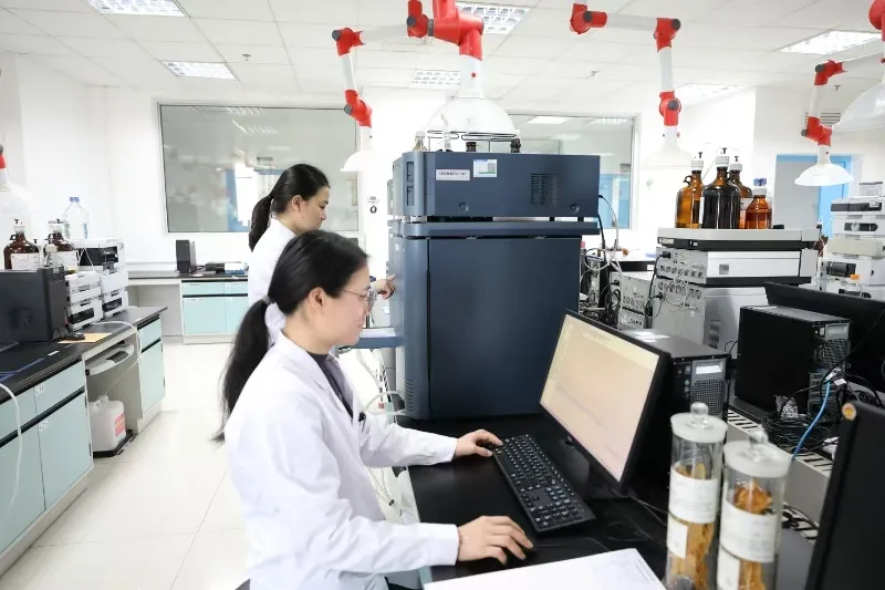 检验员用高效液相色谱仪分析海洋中药材的化学成分