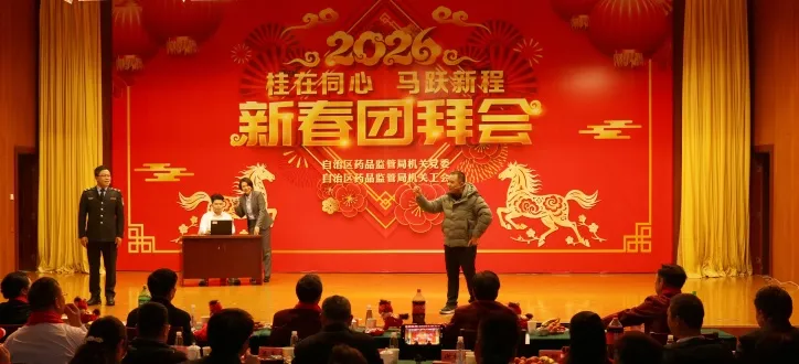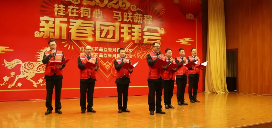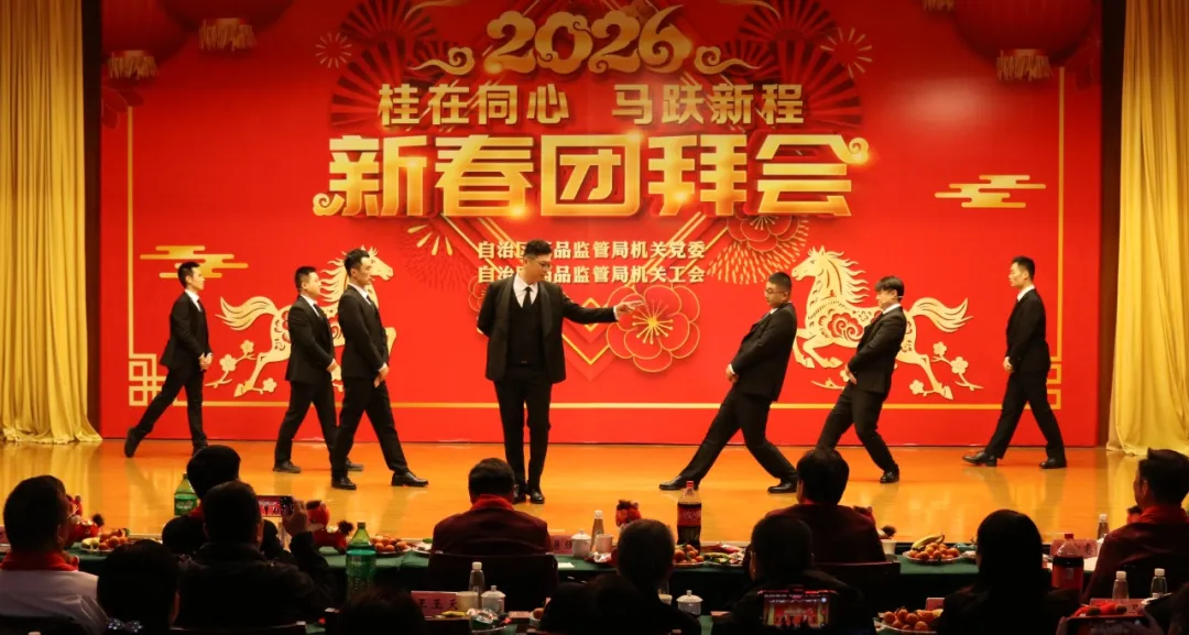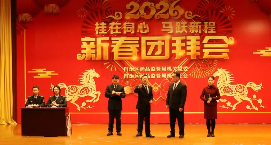 整场团拜会节目精彩纷呈,高潮迭起,充分展现了广西药监人团结奋进的精神风貌和“桂在同心”的凝聚之力。2026年,广西药监系统将继续在局党组的坚强领导下,同心协力,奋楫争先,为筑牢药品安全防线、促进医药产业高质量发展、守护人民健康福祉作出新的更大贡献。