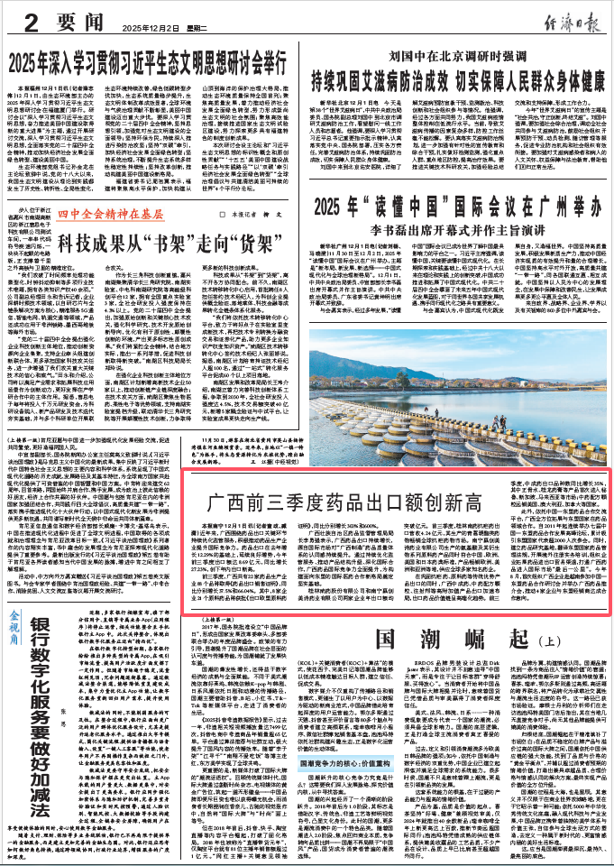 经济日报:广西前三季度药品出口额创新高