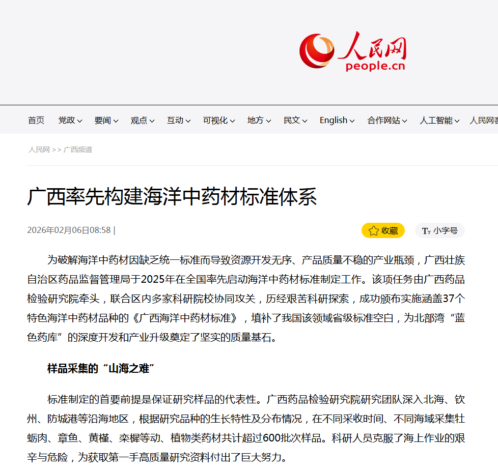 人民网:广西率先构建海洋中药材标准体系