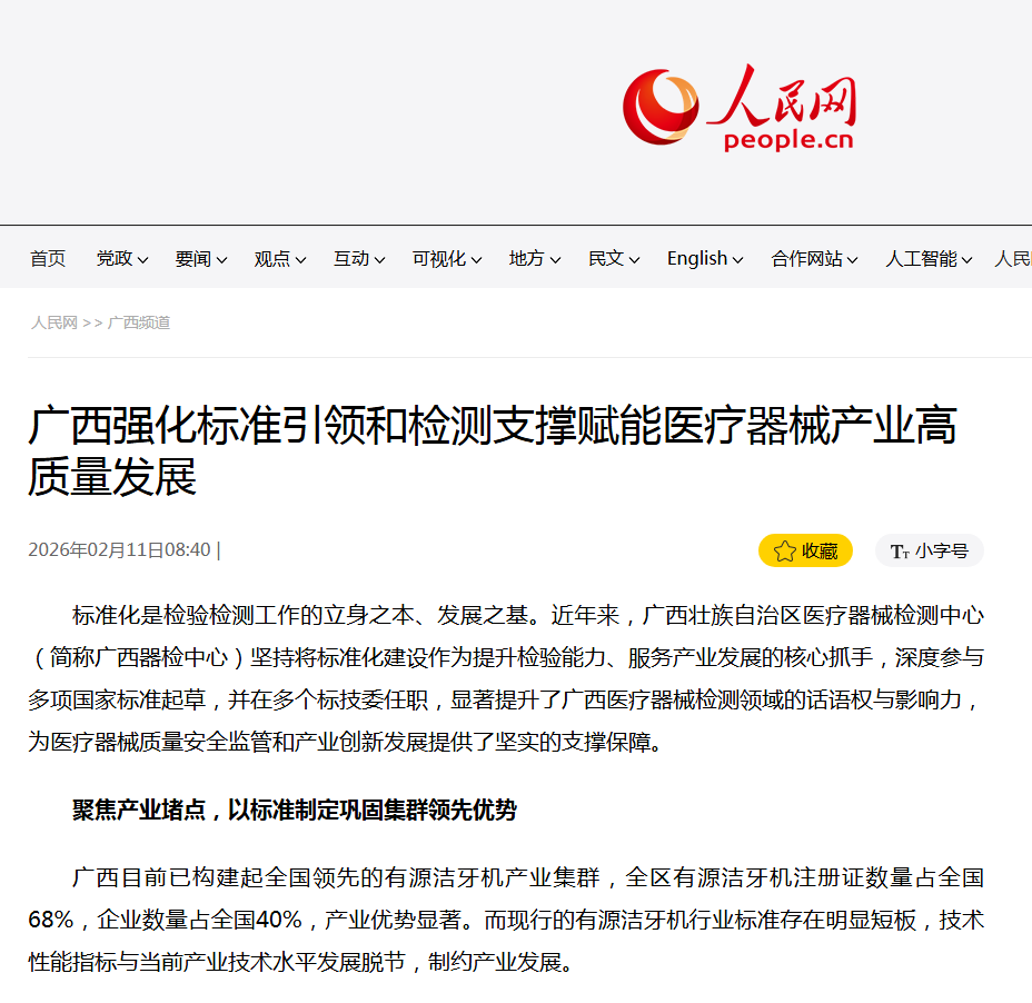 人民网:广西强化标准引领和检测支撑赋能医疗器械产业高质量发展