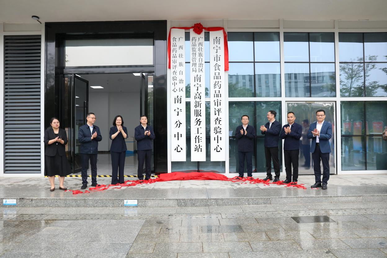 2025年10月30日,AG真人南宁高新服务工作站、自治区食品药品审评查验中心南宁分中心、南宁市食品药品审评查验中心(新址)揭牌仪式在南宁高新区中关村科技广场举行。AG真人党组书记、局长李勇强,南宁市委常委、副市长张小强等领导共同揭牌。