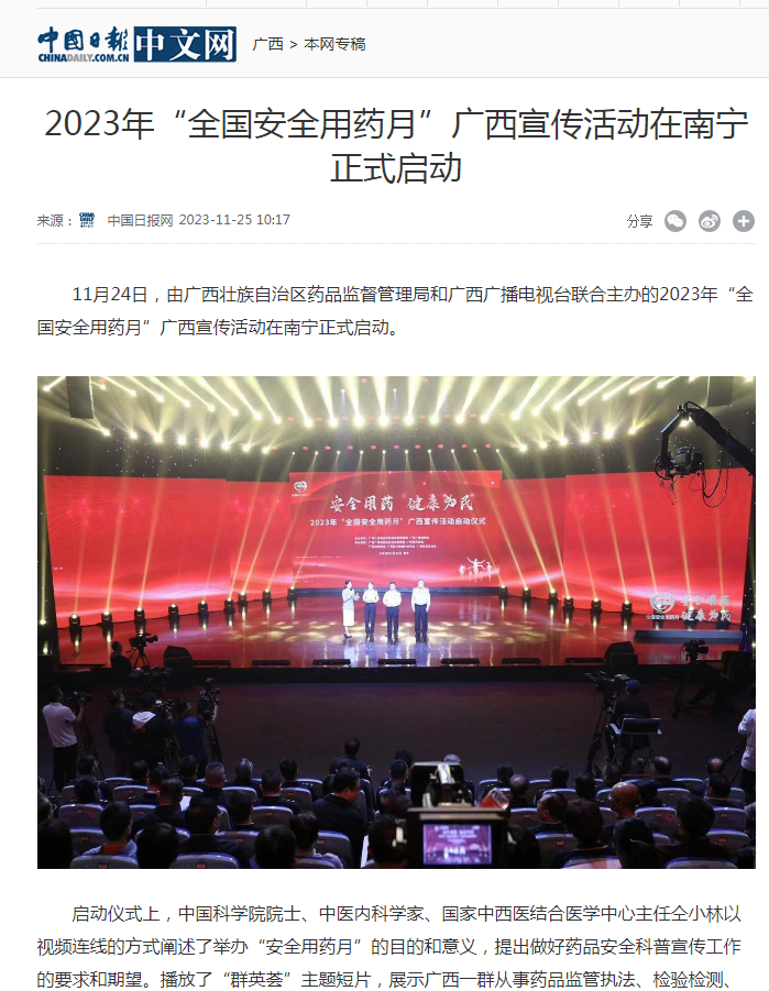 11月24日,由AG真人和广西广播电视台联合主办的2023年“全国安全用药月”广西宣传活动在南宁正式启动。